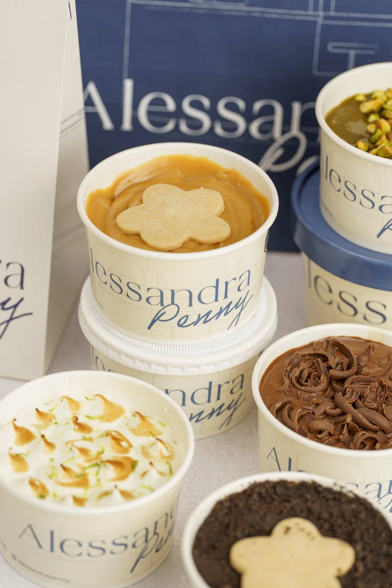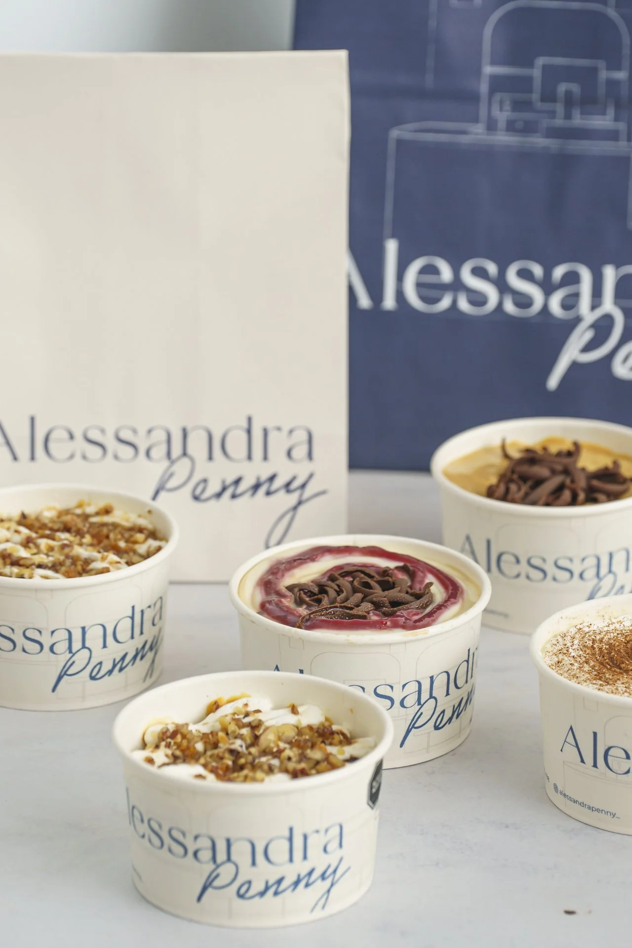 Alessandra Penny es una pastelería contemporánea en Lima que reinventa los postres del día a día con propuestas innovadoras. Su oferta se inspira en formatos virales y actuales, siendo los cuchareables su producto estrella.